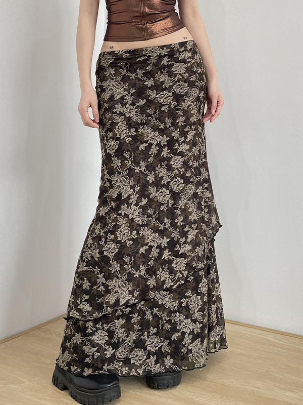 Maxirock im Vintage-Stil mit kleinen gebrochenen Blumen