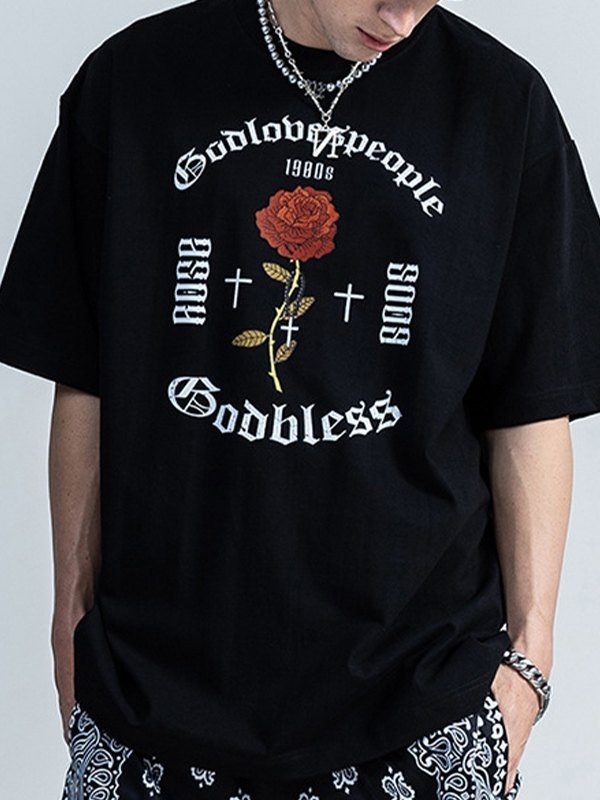 Kurzarm-T-Shirt mit Street-Blumen-Print