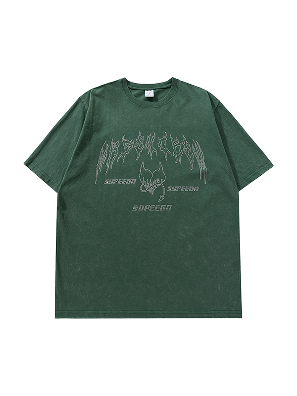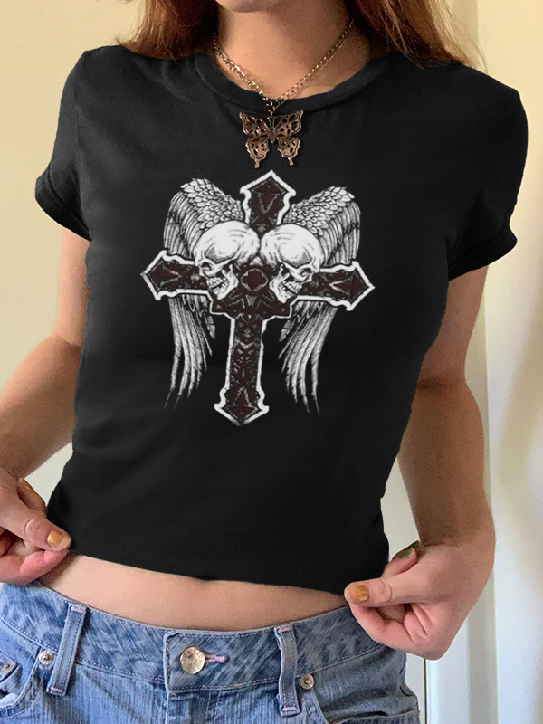 Kurzarm-T-Shirt mit One-Shoulder-Totenkopf-Print