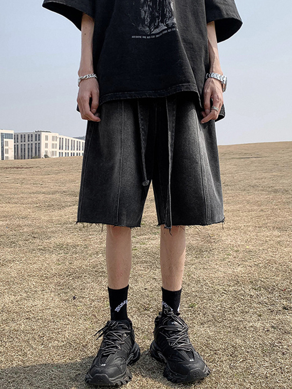 Herren-Shorts zum Binden mit ausgefranstem Saum in Waschung