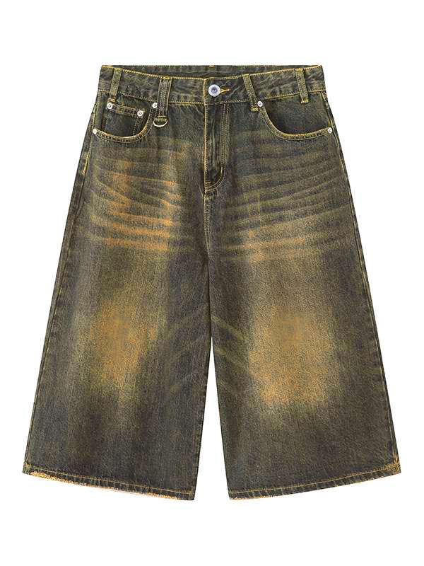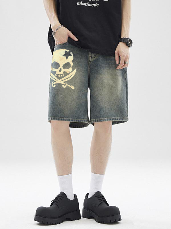 Lockere Jeansshorts für Herren mit Totenkopf-Print