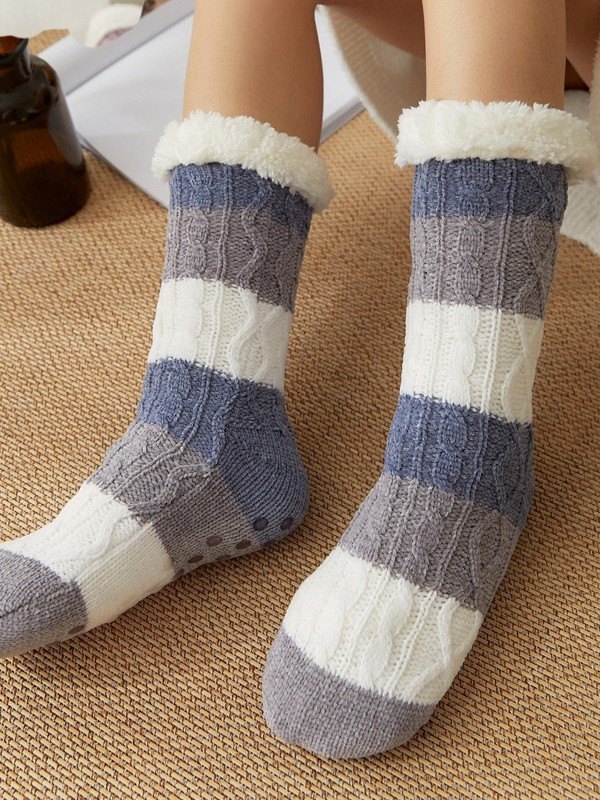 Farbblock gestreifte, mit Fleece gefütterte Socken