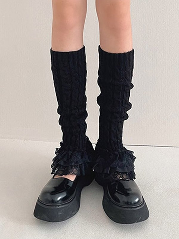 Rüschen-Spitzen-Kabelstrick-Beinwärmer