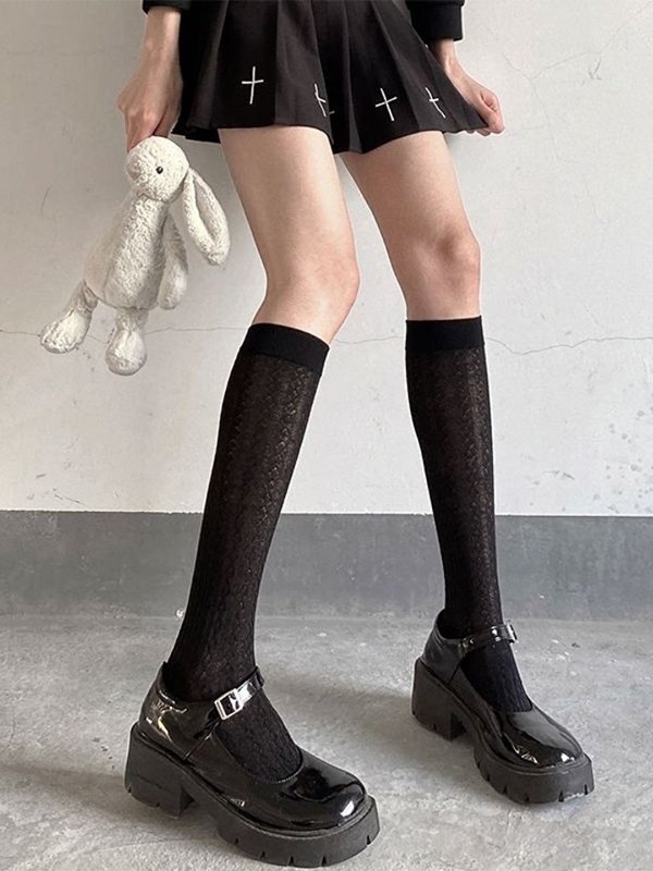 Einfarbige Jacquard-Kniestrümpfe