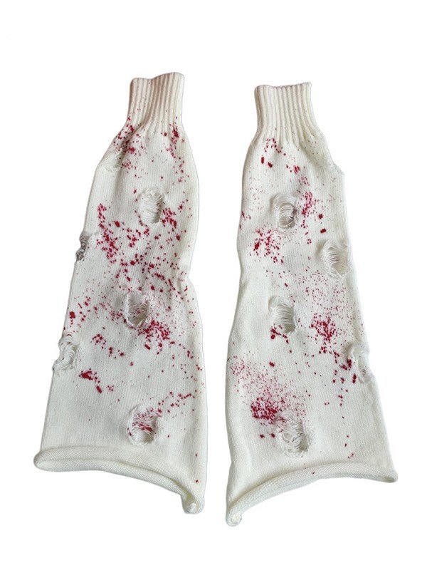 Blutiger gestrickter Beinwärmer in Distressed-Optik