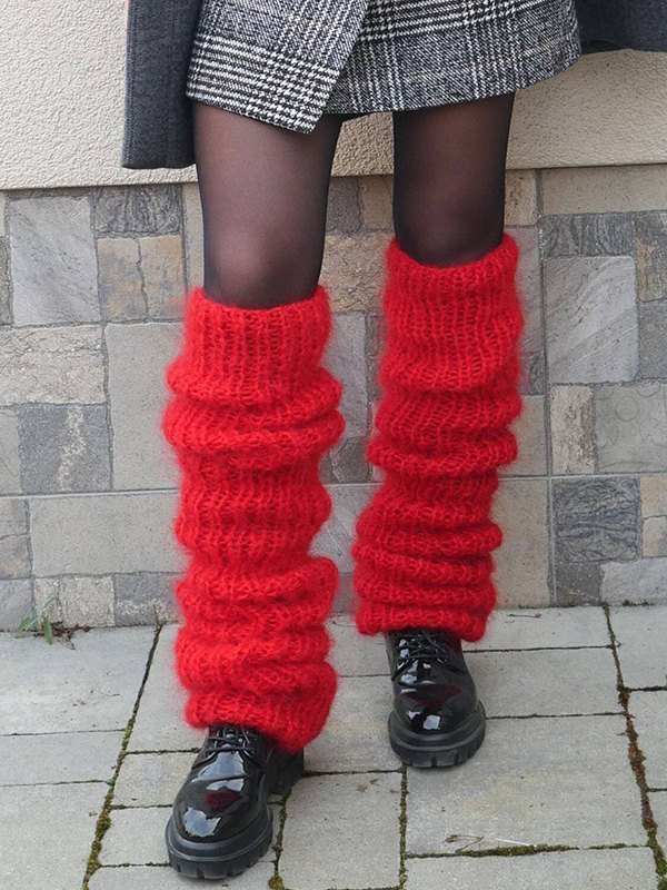 Einfarbige Häkelstrick-Beinwärmer