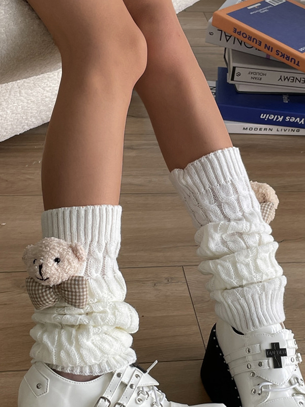 Gestrickter Beinwärmer mit Bärendekor im Twist-Design