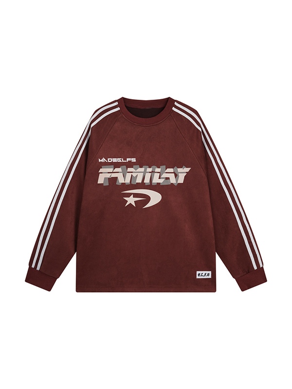 Herren-Sweatshirt aus Wildleder mit Buchstaben-Print und Paspeln