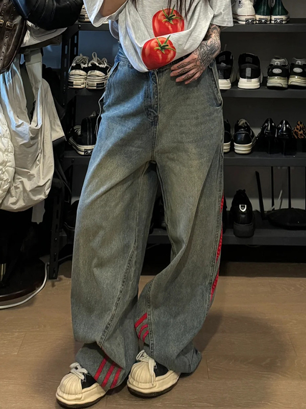Lockere Jeans mit hoher Taille und weitem Bein