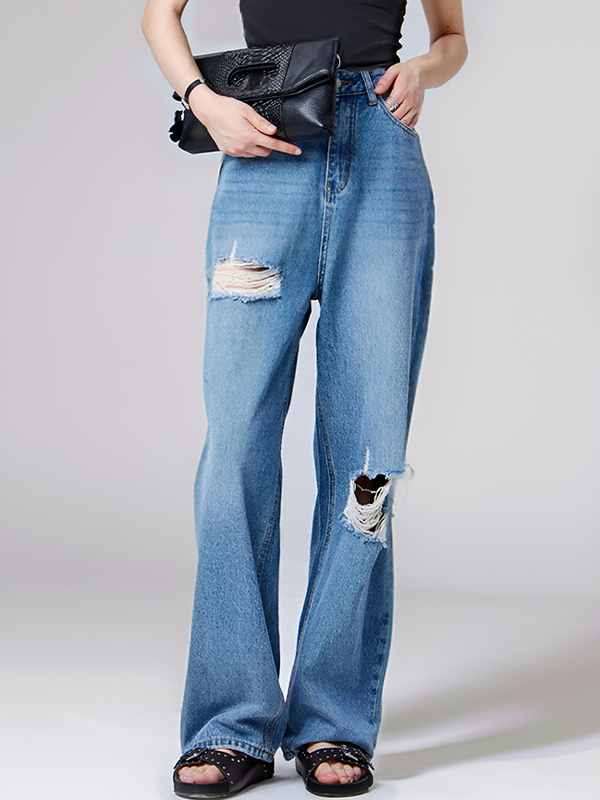 Gerade geschnittene, lässige Boyfriendjeans im Distressed-Look