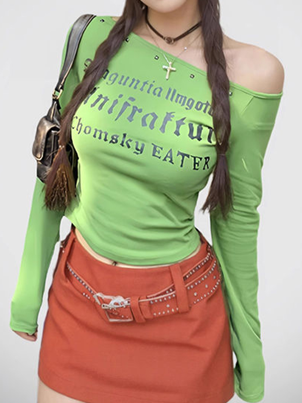 Langarm-T-Shirt mit One-Shoulder-Lettering