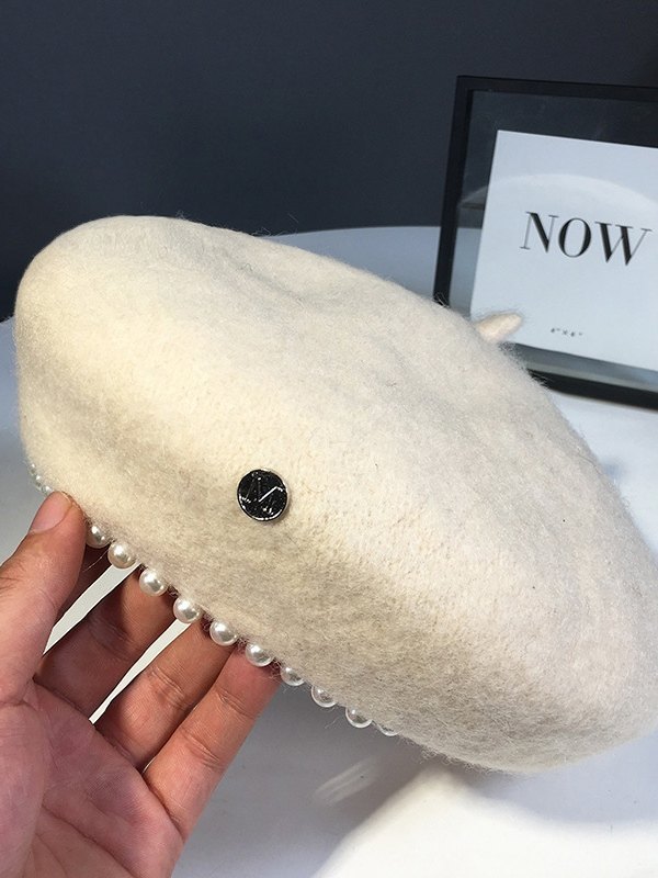 Kunstperlenverzierte Baskenmütze aus Wollmischung