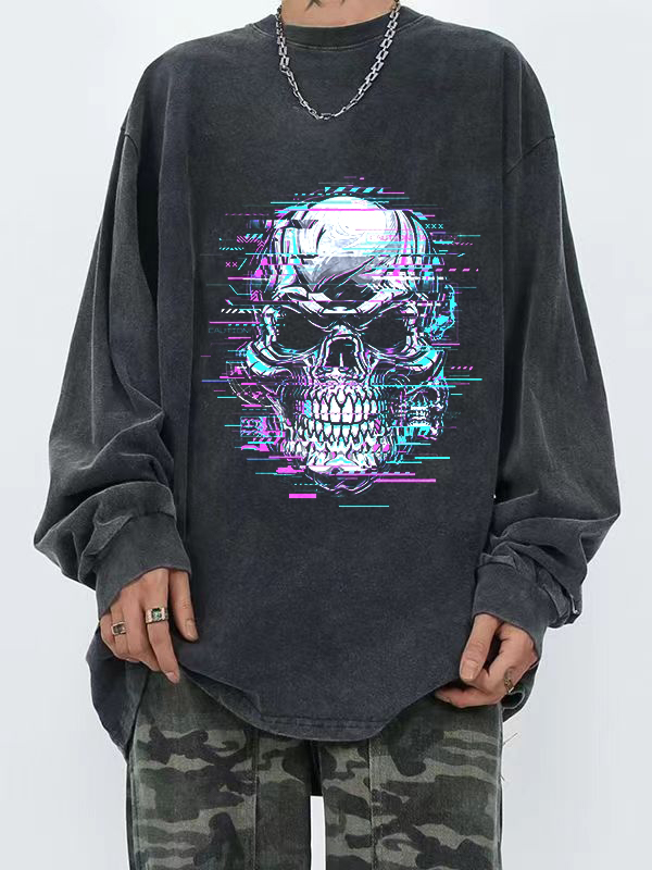 Herren-Langarm-T-Shirt mit Totenkopf-Serien-Print