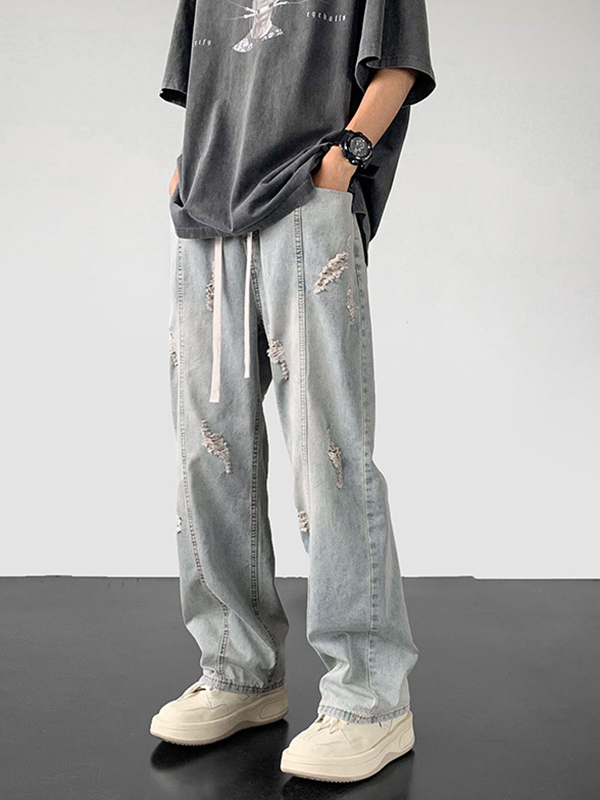 Herren-Hose mit geradem Bein, verwaschenem Riss und Kordelzug