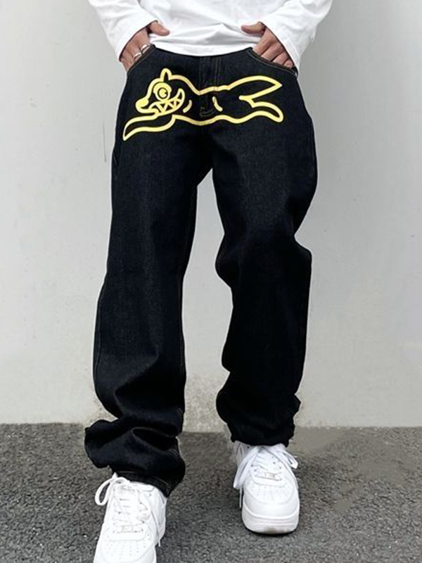 Gerade geschnittene Jeans für Herren mit Flying Dog-Print