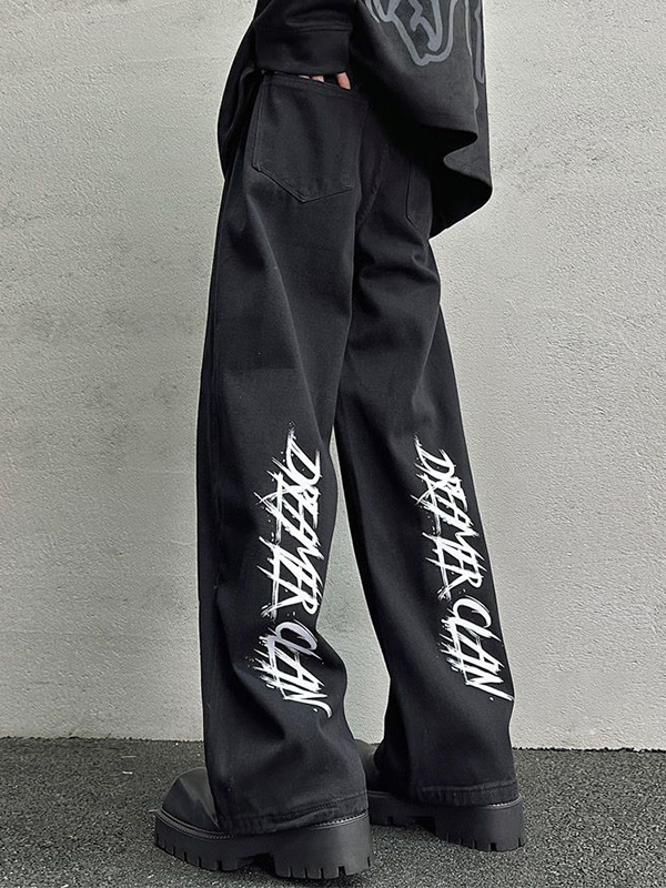 Vintage Gelb Schlamm Buchstaben Lose Gerade Jeans