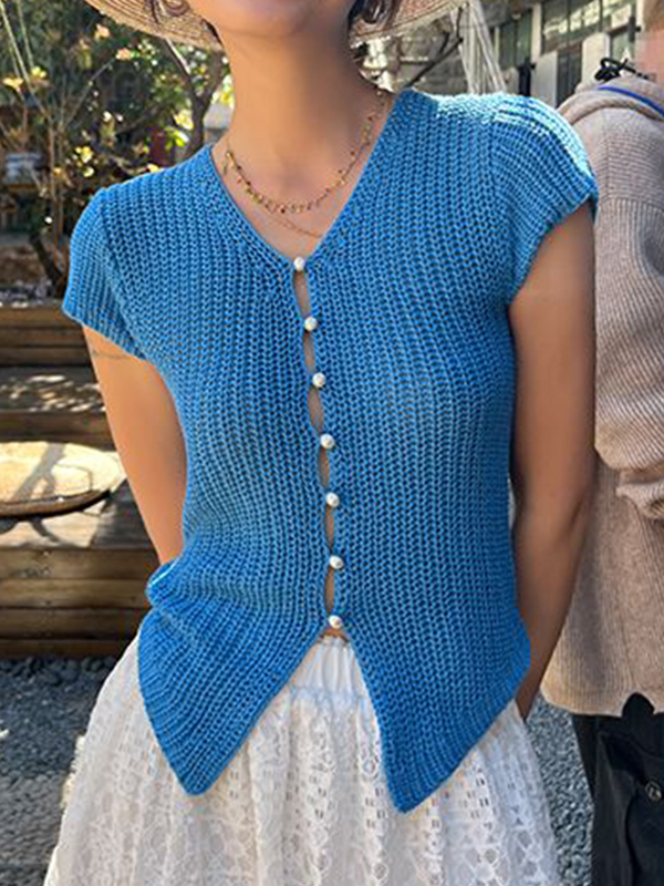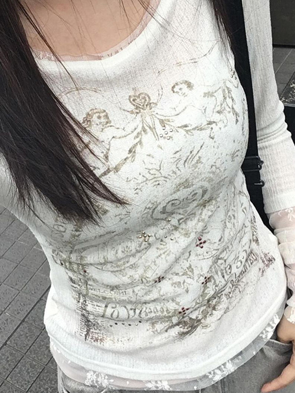 Vintage Langarm-T-Shirt mit V-Ausschnitt