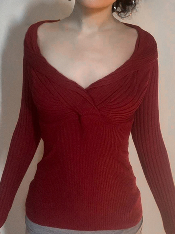 T-Shirt mit tiefem Ausschnitt und langen Ärmeln