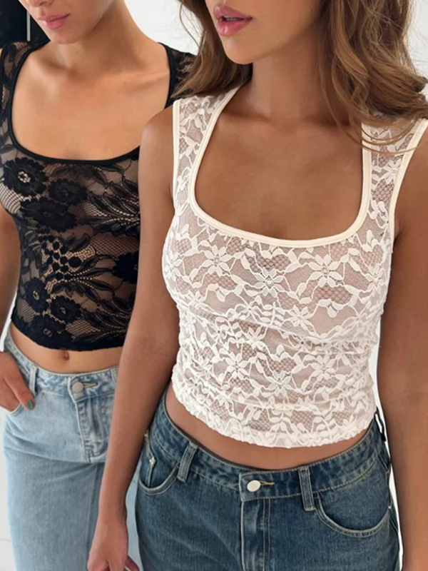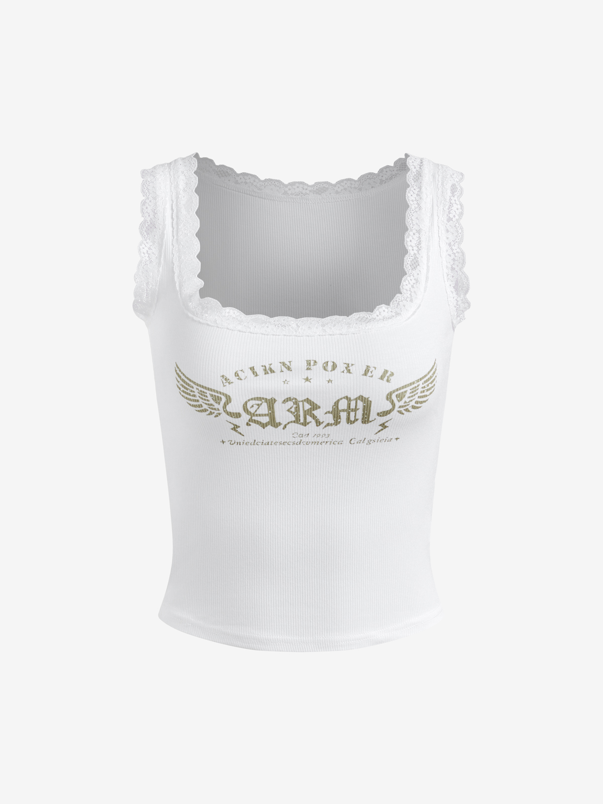 Tanktop mit Spitzenbesatz und quadratischem Ausschnitt