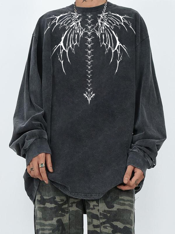 Übergroßes Langarm-T-Shirt mit Skelett-Motiv für Herren