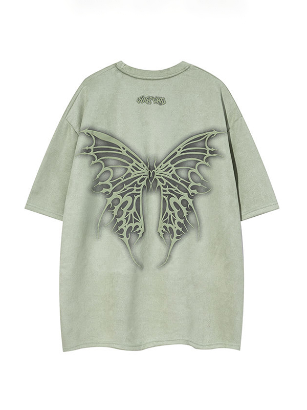 Übergroßes Kurzarm-T-Shirt mit Vintage-Graffiti-Schmetterling