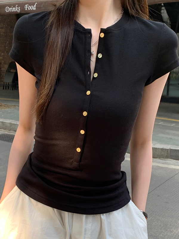 Einfarbiges, kurzärmliges T-Shirt mit V-Ausschnitt