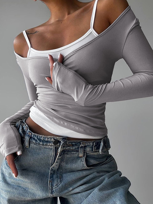 Zweiteiliges Langarm-T-Shirt mit Farbblock