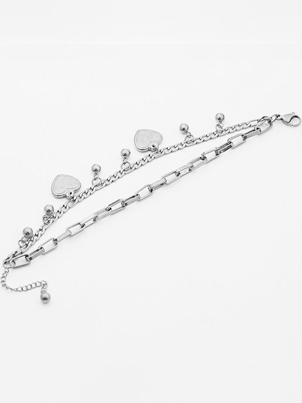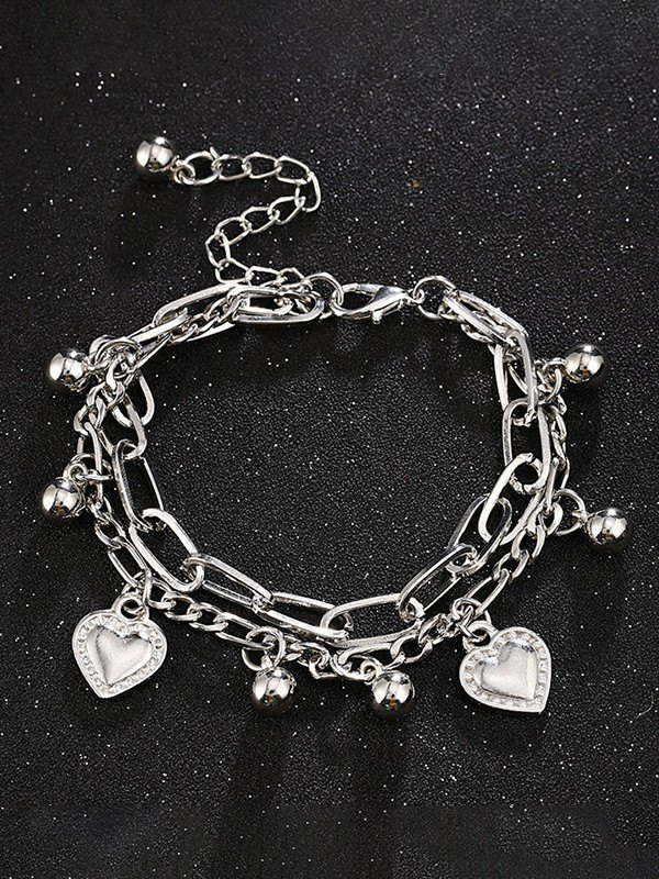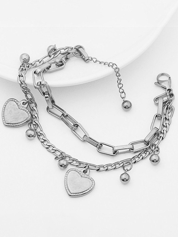 Double-Layer-Herz-Charme-Gliederkettenarmband