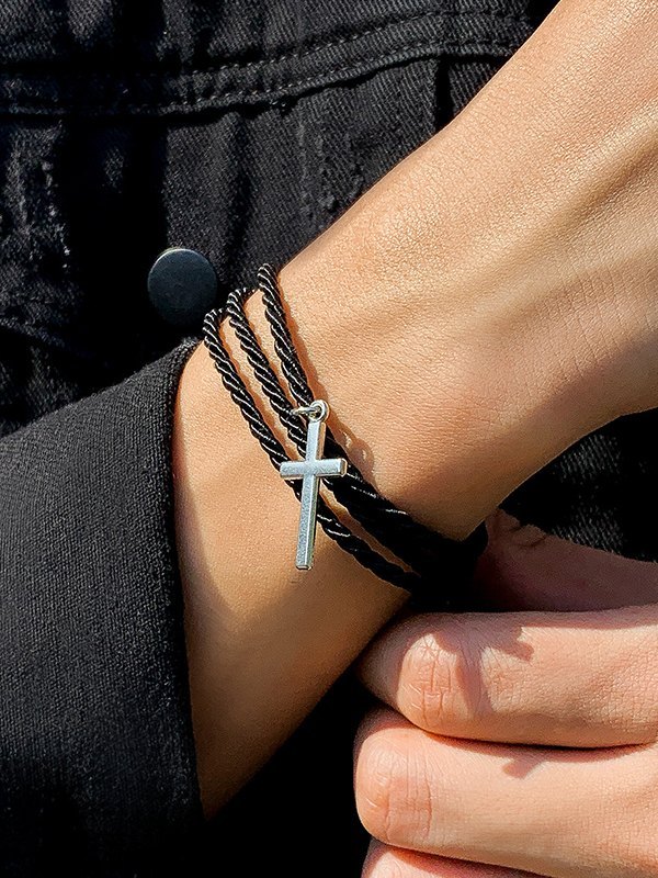 Schreibe die erste Bewertung für „Mehrschichtiges Seilarmband mit Kreuzanhänger für Herren“