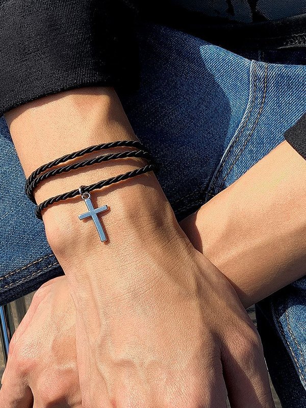Mehrschichtiges Seilarmband mit Kreuzanhänger für Herren