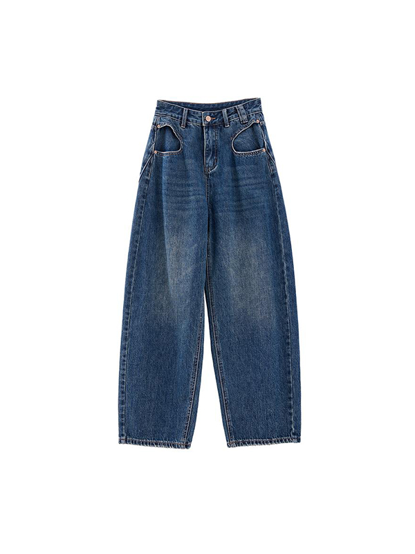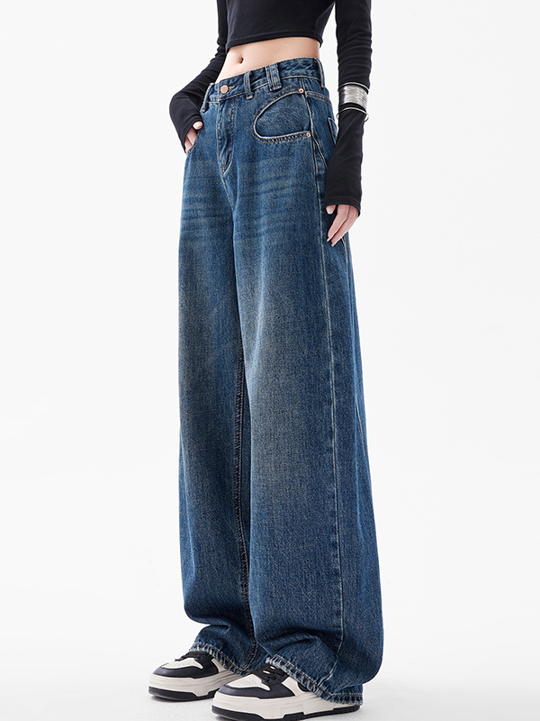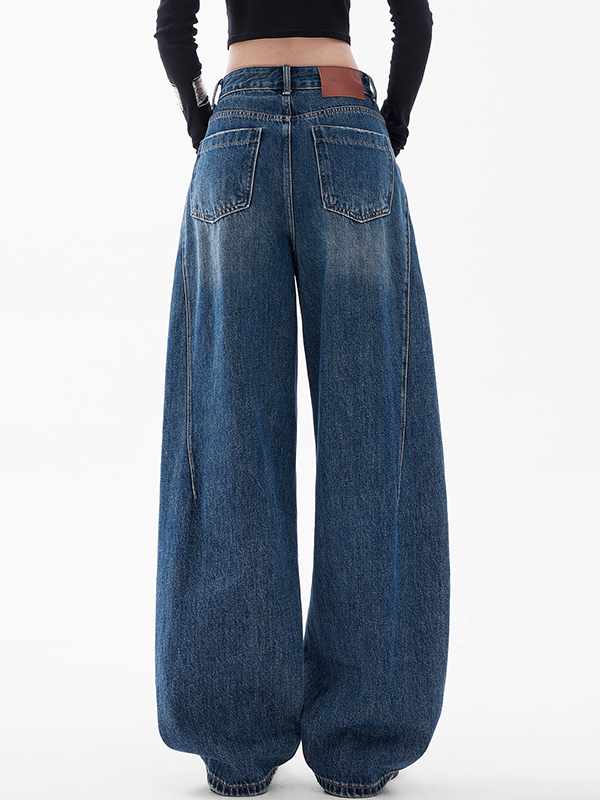 Blaue Boyfriendjeans mit weitem Bein