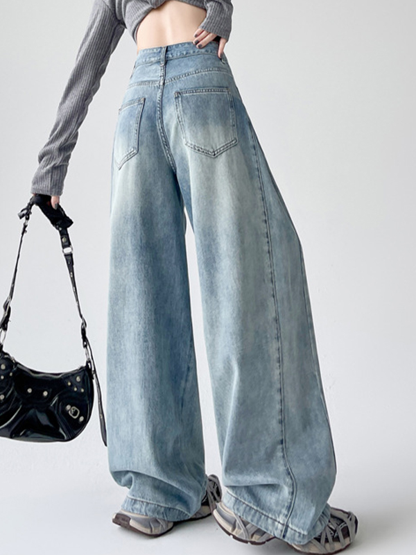 Schlankmachende, drapierte, gerade Boyfriendjeans