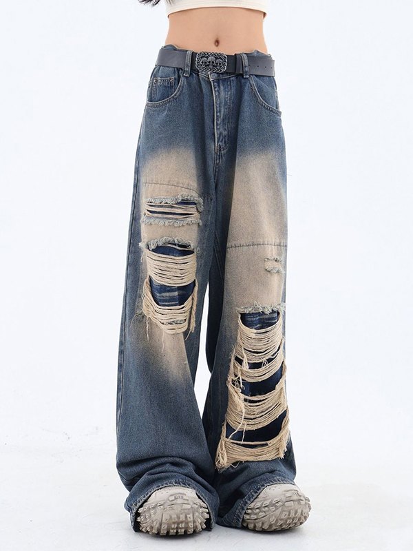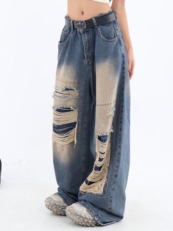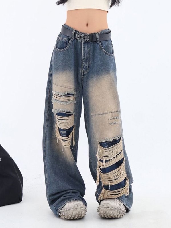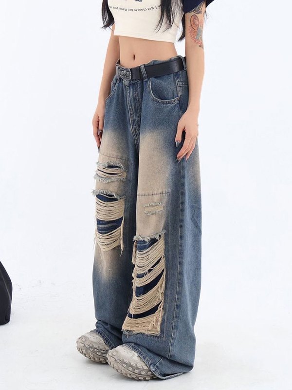 Design: Der Retro-Distressed-Patch und das zerrissene Design verleihen der Jeans einen einzigartigen und trendigen Look, während die Nische zerrissen ist Silhouette verleiht der Jeans einen Hauch von Persönlichkeit und Charakter.