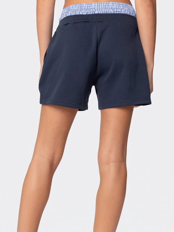 Sportliche Freizeitshorts mit Patchwork-Karo-Bund