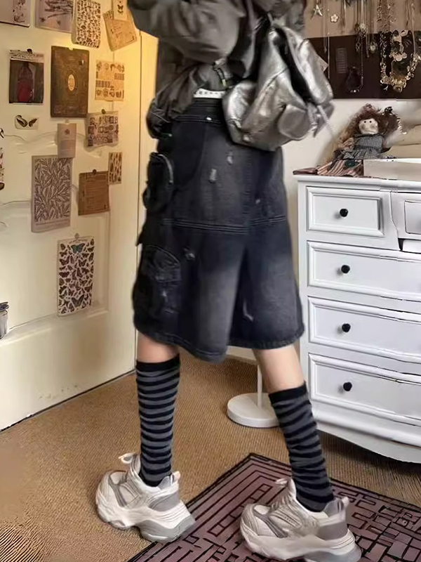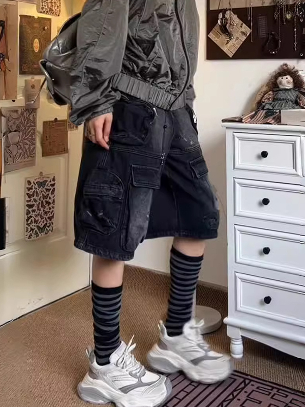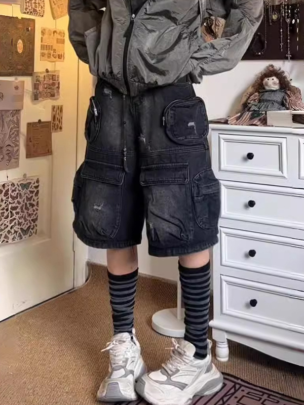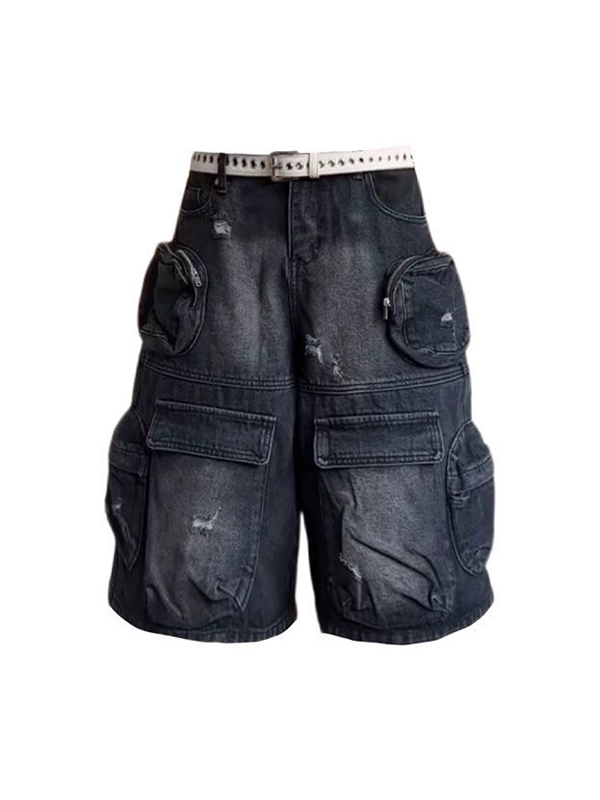 Verwaschene Vintage-Jeansshorts mit mehreren Taschen