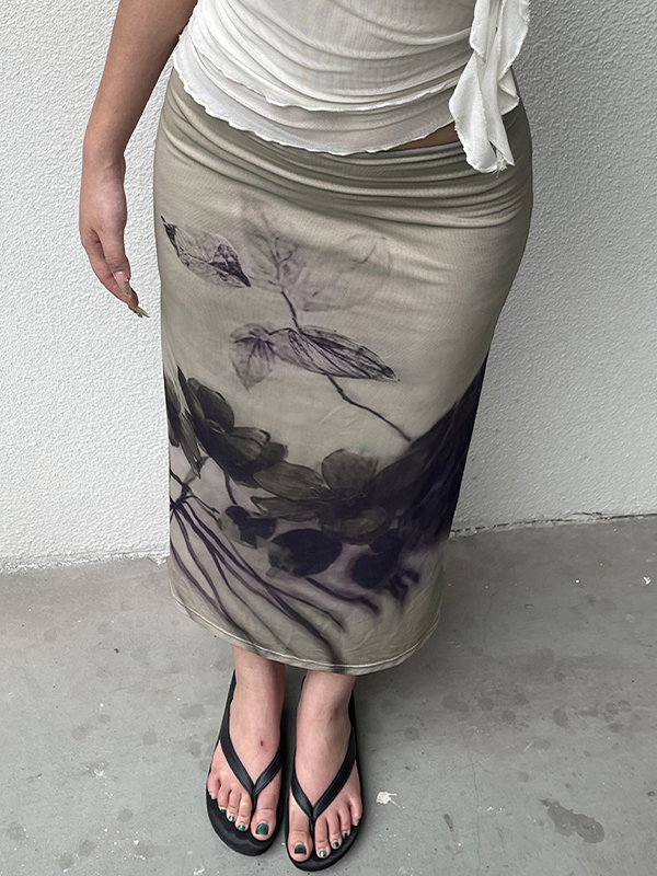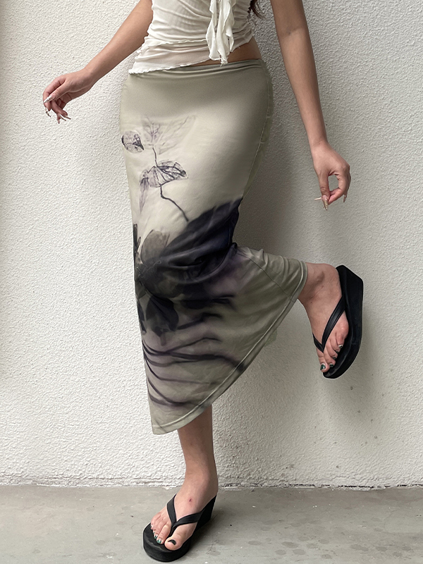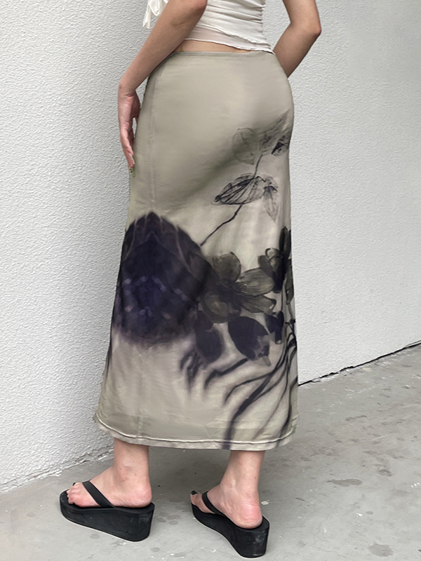Maxirock im Retro-Stil mit Tintendruck im chinesischen Stil