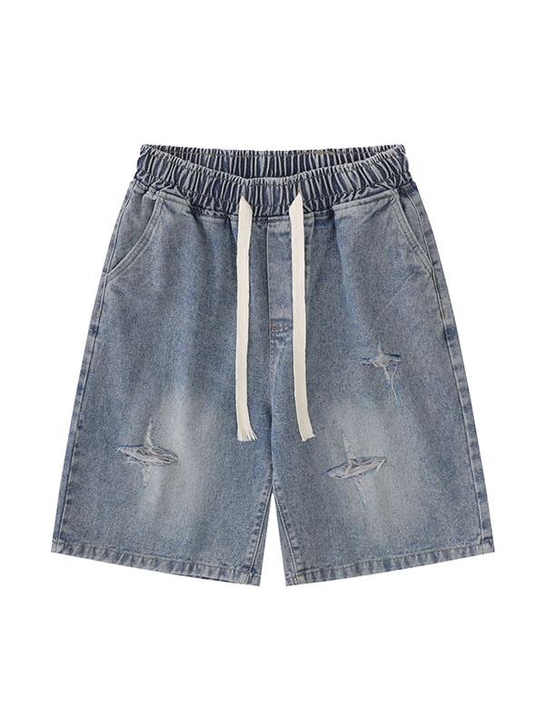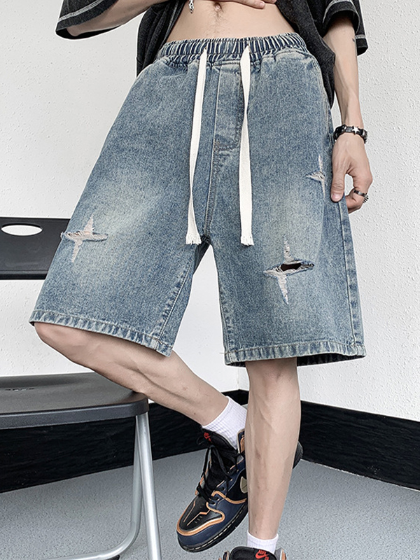 Gerade Jeansshorts für Herren mit verwaschenem, zerrissenem Schnitt