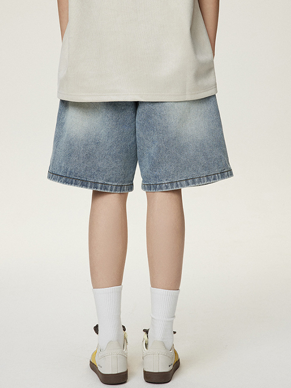 Gerade, lockere Denim-Shorts für Herren mit Distressed-Stickerei