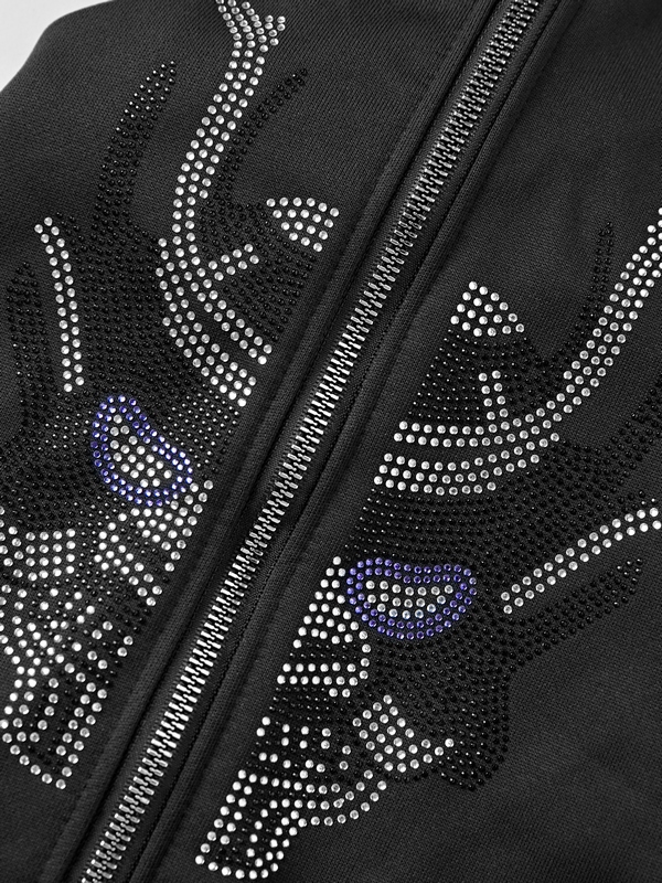 Einzigartig Design: Dieser Kapuzenpullover verfügt über Strass-Drucke im Street- und Punk-Stil, die ihm einen coolen und ausgefallenen Look verleihen, der sich von der Masse abhebt.