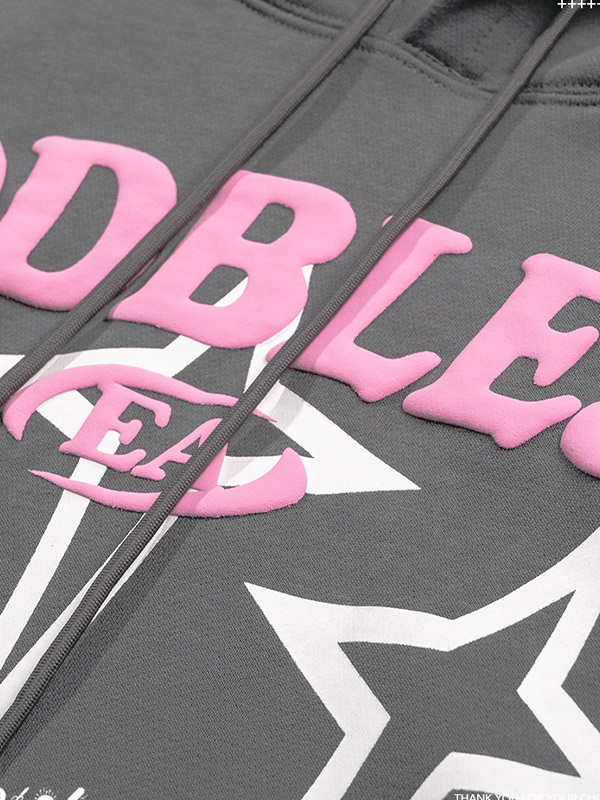 Einzigartiges Design: Der Kapuzenpullover verfügt über einen kontrastfarbenen Buchstaben- und Sterndruck, der ihm einen Vintage- und Street-Touch verleiht.