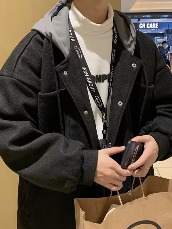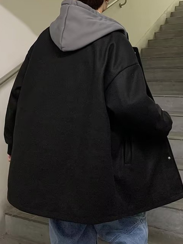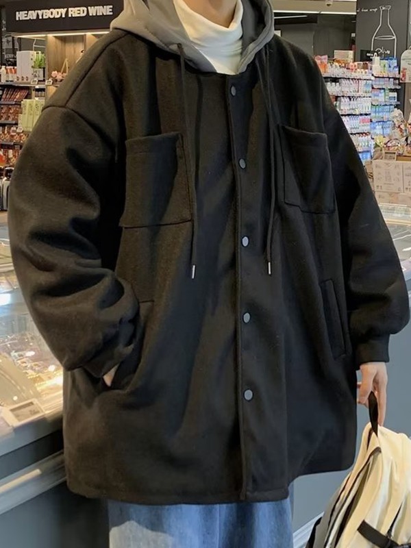 Beschreibung: Dieses Go-to-Winter-Outfit hat eine entspannte Silhouette, eine kuschelige Kapuze mit Einsätzen auf der Rückseite, funktionale Taschen vorne und überschnittene Schultern, die mit einem Druckknopfverschluss-Design abgeschlossen werden.