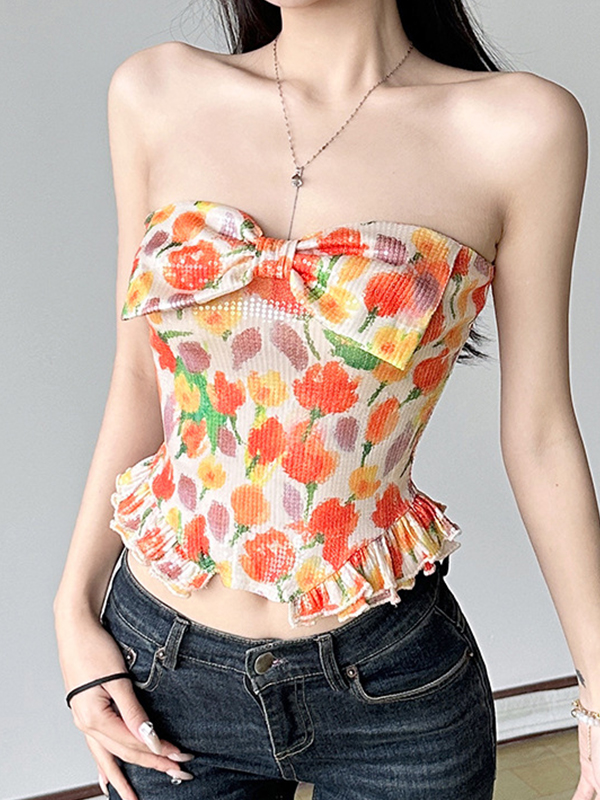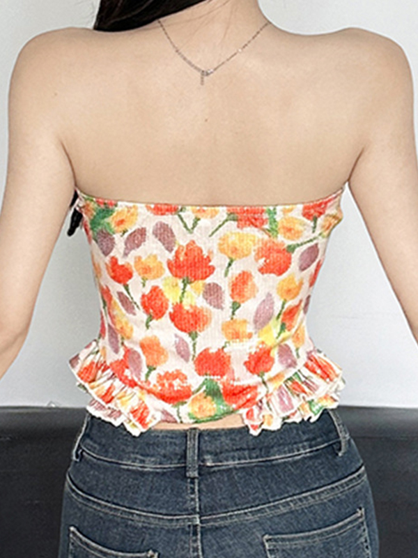 Bandeau-Top mit Tulpen-Print und Schmetterlingen