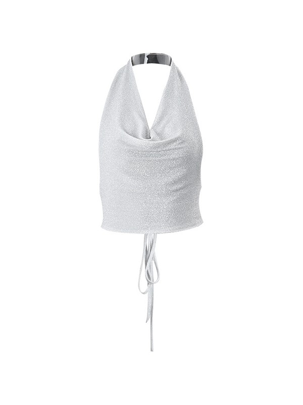Beschreibung: Nehmen Sie an einem romantischen Date, Nachtclub, Partys oder einer Kneipe teil, dieses glänzende Crop-Top muss ein perfektes Stück sein. Es besteht aus metallischem Polyestergewebe, hat einen Neckholder-Stil mit Wasserfallausschnitt und einen vollständig offenen Rücken mit verstellbarem Bindeverschluss.