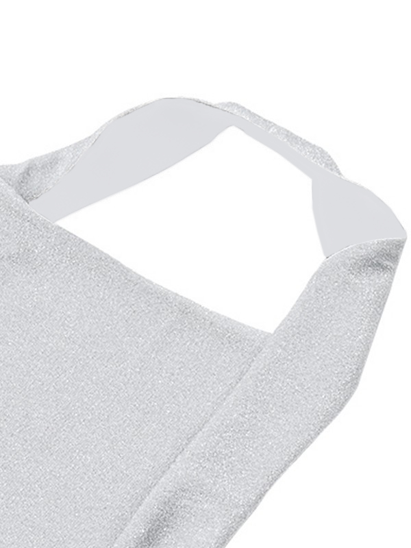 Schreibe die erste Bewertung für „Kurz geschnittenes Trägershirt in Metallic-Silber mit Neckholder“