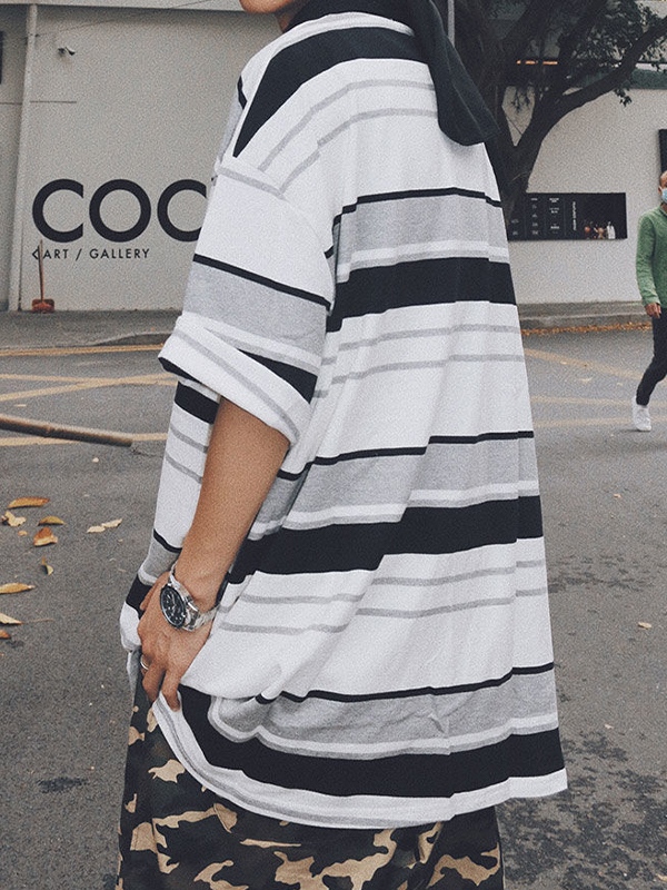Einzigartiges Design: Der Reverskragen und das Kurzarmdesign In Kombination mit dem klassischen Streifendruck und der zarten Stickerei verleiht es diesem T-Shirt einen einzigartigen und stilvollen Look.