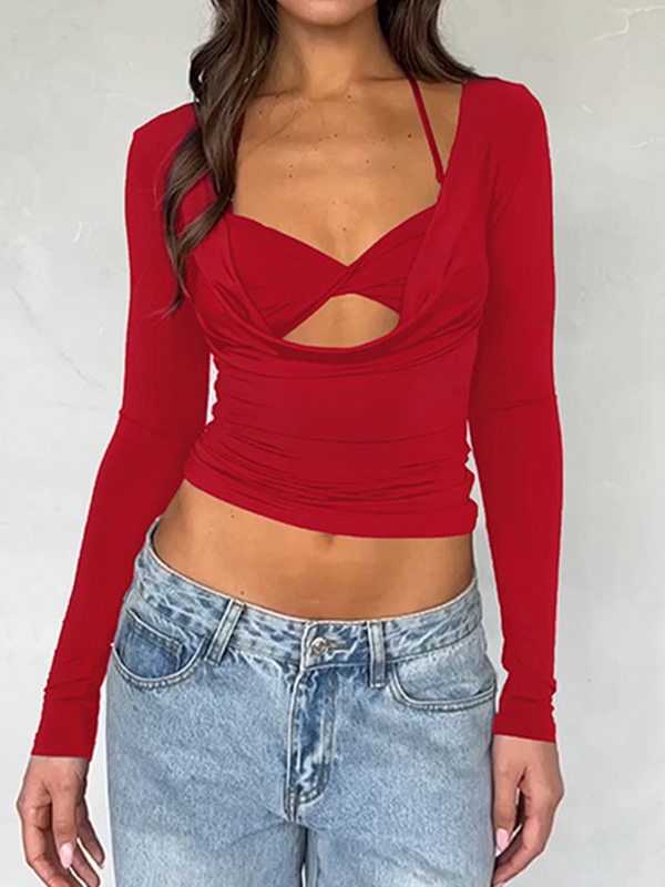 T-Shirt mit langen Ärmeln und Futter am Ausschnitt