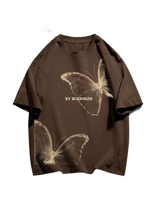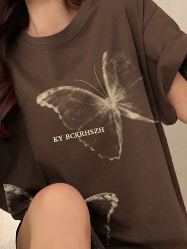 Übergroßes Kurzarm-T-Shirt mit Vintage-Schmetterlingsdruck