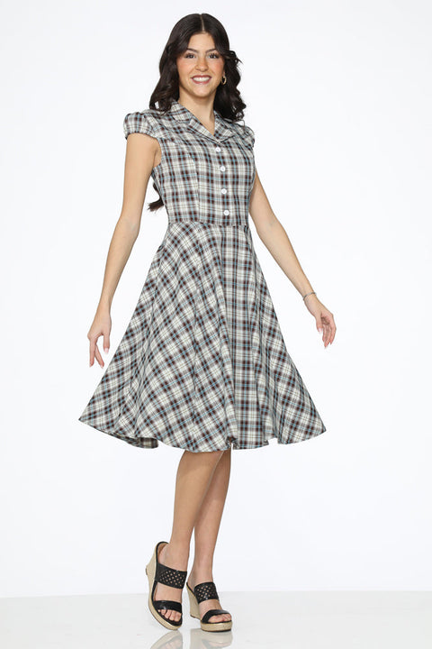 Bruin-blauwe geruite swingjurk